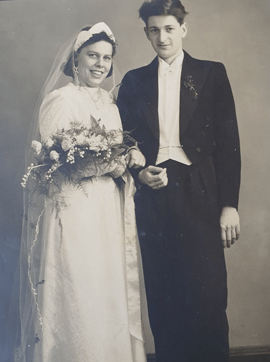 Min mor och far på min fars avtackning juni 1985 (från Nakskov lokalhistoriske Arkiv, arkiv.dk)