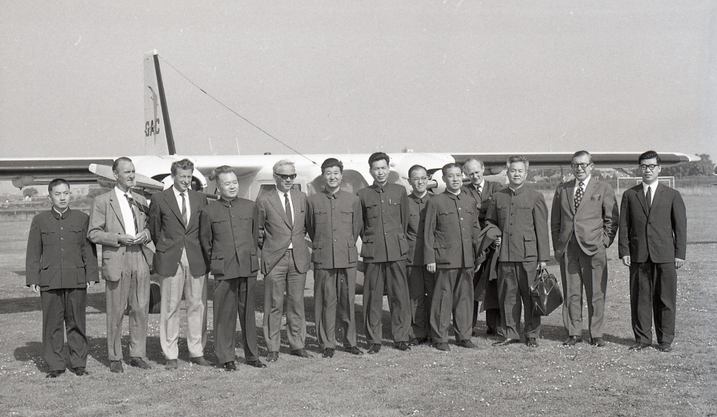 Studiebesök från Kina 1973. Kineserna i traditionell klädsel. Med på bilden finns också Olav Kongsted, som var en god vän och kollega. Bilden är från Nakskov lokalhistoriske Arkiv, arkiv.dk.