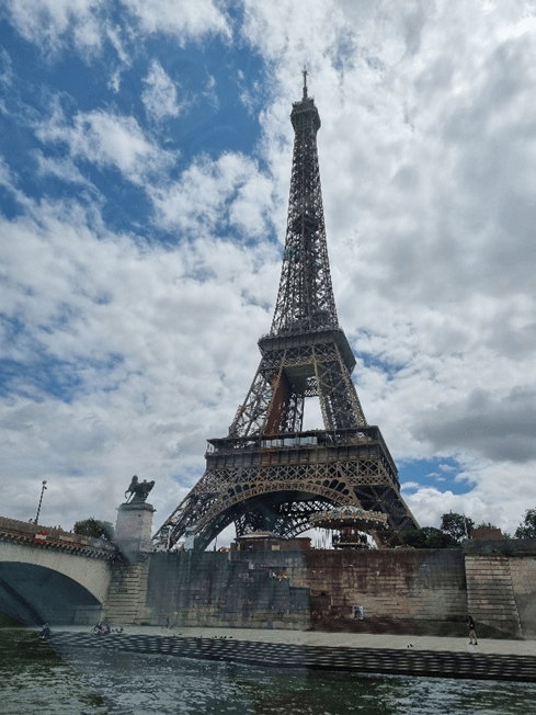 Dagens huvudaktiviteter var i stället att åka båt på Seine och därefter besöka Musée d’Orsay. Jag hade hemifrån köpt en två-dagars biljett till en Hop-on / Hop-off – båt. Planen var att vi första dagen skulle åka från Notre Dame och hela vägen till Eiffeltornet – för att sedan stiga av vid Musée d’Orsay. Vi hade tur med vädret och det var skönt att sitta och koppla av på båten.