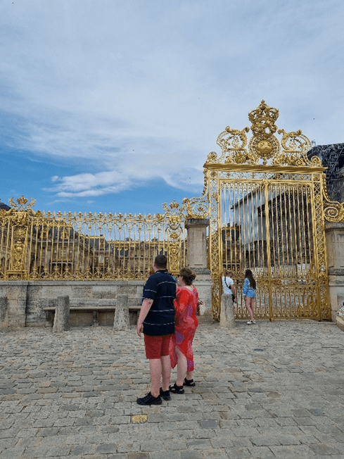 Nästa dag fortsätter lite i samma tema. Vi tog tåget till Versailles från stationen på Place de la Michelle. Av någon anledning fick vi vänta länge på tåget, men när vi väl var ombord gick det smidigt. Vi steg av på en station, där det tar ca 15 minuter att gå till slottet. Vi åt lunch på en McDonalds nära stationen. Bra att inte vara allt för hungrig när man skall inta Versailles.