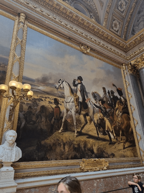 En av de första salarna vi var i hade stora tavlor som avbildade olika slagfält i Frankrikes historia. Det var där det blev tydligt för mig hur stor Napoleon har varit. Även om jag visste han hade spelat en stor roll i Frankrikes historia, så blir det påtagligt på ett annat sätt när man ser dessa jättelika bilder från han var helt ung och vidare upp genom åren. Jag imponerades av det sättet att berätta ett lands historia med väldiga tavlor som fick representera viktiga nedslag i landets krigshistoria.