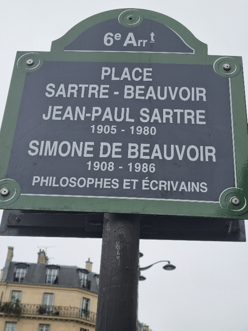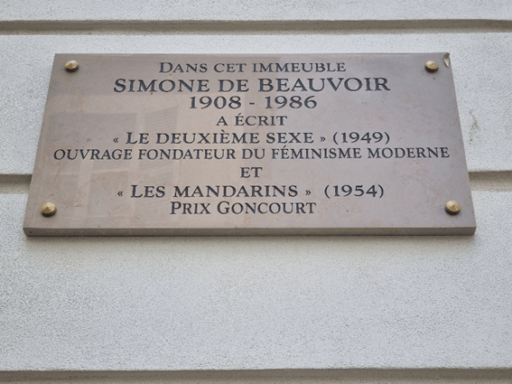 Jag visste att Simone de Beauvoir hade bott i området vi passerade och blev glad när vi upptäckte skylten nedan.