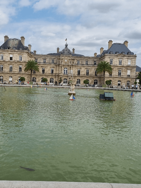 Framför palatset seglade små båtar, som man kunde hyra. Parken var väldigt stor – och här lekte och motionerade invånarna i Paris, samtidigt som turisterna fick en stunds avkoppling.