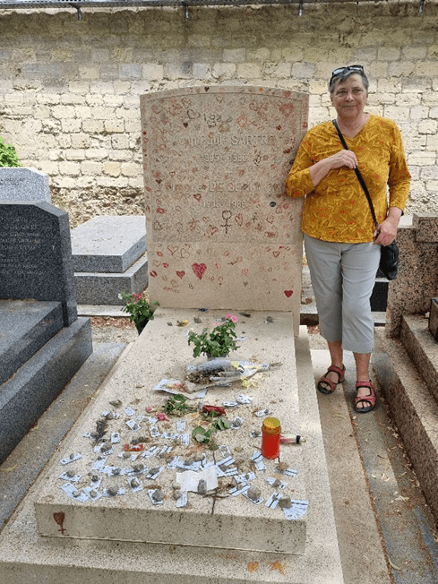 Efter besöket på kyrkogården åt vi lunch. Vi var kvar i Montparnasse kvarteret och jag njöt av att betrakta stadsdelens liv. Det var helt klart så att många av de som gick där också bodde i kvarteret. Jag såg ett äldre par, tänkte att det kunde ha varit så livet såg ut på äldre dagar för Simone de Beauvoir och Jean Paul Sartre. Att man gick på gatan och stannade till och pratade med bekanta. Att det var deras kvarter, där de hörde hemma. Som turist i en storstad går du ofta i turistkvarteren och de du möter är också turister. Men i Montparnasse såg man parisarnas vardagsliv, olika åldersgrupper, gymnasieelever i grupper och det äldre paret, som jag observerade, där jag satt på lunchrestaurangens uteplats, som var en del av den relativt smala trottoaren. Det var trångt och lite stökigt med biltrafiken – men från min plats intill väggen njöt jag att ta del av stadslivet, som utspelade sig framför mig.